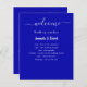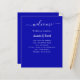 Un programme et un menu de mariage classique. Un arrière - plan bleu royal. Texte blanc. Personnalisez et ajoutez votre nom, votre date et votre programme et le menu. 1 feuille = 1 menu imprimé bord à bord.