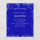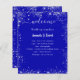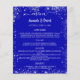 Un programme et un menu de mariage classique. Un arrière - plan bleu royal. Texte blanc. Décoré de parties scintillant en faux argent, pétillant. Personnalisez et ajoutez votre nom, votre date et votre programme et le menu. 1 feuille = 1 invite imprimé bord à bord.