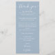 Une élégante fête mariage bleu poussiéreux merci carte de réception, personnalisée avec votre message de remerciement spécial set dans la typographie stylisée et programme d'événements et de la fête de mariage au contraire. Un gardien spécial vous remercie pour vos invités. Conçu par Thisisnotme©