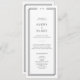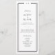 Un programme de mariage noir et blanc raffiné de la suite Avery, avec une mince bordure double ligne, et une typographie sans serif propre. Idéal pour les mariages modernes et minimalistes. Inclure les noms du couple, la date et l'emplacement du mariage, un message de remerciement, l'ordre de service, la fête de mariage et un mémorial optionnel "en mémoire d'amour".