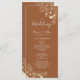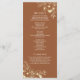 Boho moderne, élégant, floral, brûlé programme de mariage en terre cuite orange, avec dentelle fleur sauvage d'or et écriture manuscrite.