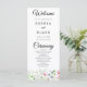 Voici le programme de mariage parfait pour ceux qui recherchent un design simple mais élégant, avec un magnifique jardin de rose pâle, blanc et bleu fleurs sauvages et verdure centré sur le devant inférieur du programme. Ce design est parfait pour ceux qui veulent incorporer une touche de nature et d'éléments botaniques dans leur journée spéciale. La partie avant du programme comprend les noms du couple, la date du mariage, la ville et l'état, et l'ordre de la cérémonie, tandis que la partie arrière énumère la fête de mariage. Le texte principal est présenté dans une simple police de caractères noire, avec les mots "Welcome", "Ceremony" et "Wedding Party" dans une police de caractères de script moderne assez noire, ajoutant une touche de sophistication et d'élégance au design. Les noms du couple sont affichés en évidence dans une police simple en noir gras avec espacement des lettres, ce qui les rend remarquables. Que vous ayez un mariage de plein air rustique ou une cérémonie intime dans un jardin, ce programme de mariage est un choix idéal pour correspondre à votre thème minimaliste, boho, pays ou botanique. C'est un hôtel élégant et intemporel que vos invités chériront pour les années à venir. Ne ratez pas l'occasion d'élever votre papeterie mariage avec ce programme étonnant !