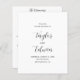 Programme contemporain de mariage noir et blanc avec une disposition simple et minimaliste avec vos noms dans un élégant script de calligraphie et vos détails mariages ci-dessous. Le dos a votre ordre de cérémonie, de mariage et message de remerciement. Un design moderne qui s'accorde avec n'importe quel style de mariage.