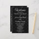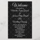 Programme de mariage motif noir élégant et élégant, avec un design charmant et sophistiqué. Le texte peut être personnalisé pour votre jour de mariage, anniversaire ou tout type de célébration.