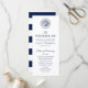 Ajoutez vos détails pour créer une carte unique et classe mais moderne programme de mariage dans un style nautique. Cette conception comporte une illustration vintage de coquillages nautiques suivie de vos détails en dessous. À l'envers, une série de rayures marines et blanches complètent le look. Tous les éléments de cet élément sont ajustables à l'aide de la fonction de personnalisation. Profitez de la création et de la réalisation de votre propre.