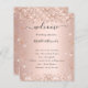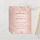 Un programme de mariage moderne et élégant, timeline. Fond de couleur rose et or rose décoré de fausse poussière pailletée. Personnalisez et ajoutez vos noms et détails de mariage. Lettres de couleur noire. Si vous avez plus de texte, il est possible de réduire l'espace entre les lignes.
