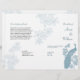 L'appel d'un paon est porté à l'esprit sur ce programme de mariage. Une illustration classique d'un paon dans un arbre dans les tons bleu ardoise claire encadre votre texte customisé tandis que la branche fleurie est utilisée comme filigrane à l'extérieur et à l'intérieur. Plier en deux pour faire un livret. Disponible en couleurs alternatives avec une gamme de produits correspondants.