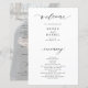 Modèle de programme de mariage noir et blanc abordable et tendance avec une typographie minimaliste moderne et une écriture calligraphique chic qui se superpose. ++++++++++++ Facile à personnaliser avec votre photo et texte personnalisés sur les deux côtés !