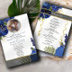 Prenez-vous un programme de mariage unique que vous pouvez pleinement customiser pour le rendre spécial et unique à votre mariage. le design est livré avec un cadre où vous pouvez mettre votre photo/photo avec votre homme ou avec votre femme, le cadre qui vient avec des perles complétera la photo du couple à l'intérieur et fera la carte look si élégant. Carte de programme de mariage moderne avec accent bleu et or.