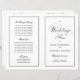 Ce programme est une page volante de 8,5 x 11 qui nécessite d'être pliée pour être assemblée. Programme de mariage classique discret noir et blanc avec une touche moderne mettant en vedette l'élégante écriture du mot "Mariage" sur la "couverture" extérieure avec une bordure noire. Tout le texte est modifiable, vous pouvez déplacer ou supprimer tout ce dont vous n'avez pas besoin.