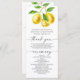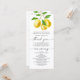 Notre carte de programme de mariage à thème citron est le moyen parfait pour tenir vos invités informés et engagés à votre cérémonie de mariage. Le citron lumineux et joyeux est parfait pour les mariages d'été, et la typographie élégante ajoute une touche de sophistication. Le motif citron apporte une touche de charme fantaisie, faisant de cette carte programme un joli complément pratique à votre décor mariage.