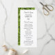 Donnez à vos invités l'ordre de votre cérémonie de mariage d'été en plein air avec le programme naturel de mariage de Jardin vert Grass. Customisez-le avec les noms personnels de la mariée et du marié et la chronologie. Ce programme de mariage personnalisé décontracté mais élégant présente une photo de fond d'une pelouse d'herbe verte.