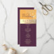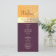 Elégant, moderne, tons bijoux, programme de mariage jaune et prune violet, avec dentelle dorée dorée fleurie et calligraphie simple.