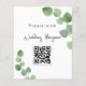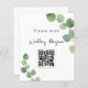 Un arrière - plan blanc chic. Décoré avec des eucalyptus vert aquarellé, sprigs. Personnalisez et ajoutez votre propre code QR à votre site Web avec le programme de mariage.