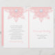 Flocon de neige moderne et contemporain blanc et rose hiver plié cérémonie mariage et programme de fête qui comprend un flocon de neige blanc et une image d'un bijou sur arrière - plan rose. Cet élégant design mariage modèle est entièrement personnalisable et personnalisé et il est parfait pour un mariage de Noël d'hiver Décembre. Vous devrez le plier en deux. Choisissez seulement ce type de papier-valeur comme il se plie bien. Certains éléments sont offerts par vectorportal.com.