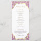 Cette carte de programme de mariage présente un design minimaliste dans le rose tendre et l'or élégant. L’avant met en valeur les noms du couple à l’intérieur d’un cadre doré, dressé contre un arrière - plan rose doux qui rayonne de romantisme et de charme. La page arrière transporte tous les détails mariages dans un format propre et moderne avec des accents dorés délicats. L’association harmonieuse de la douceur du rose avec le luxe intemporel de l’or fait de ce programme un choix élégant pour les mariages romantiques et formels.