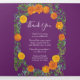 Beau programme de mariage orangé & prune violette et rose avec une abondante verdure. Parfait pour un thème fleuri ou un mariage blanc traditionnel au printemps ou en été. Customisez la couleur et le texte pour faire de ce programme de mariage votre propre!