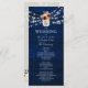 Guidez vos invités à travers votre cérémonie en style avec ce programme de mariage rustique bleu marine. Décoré de lumières à cordes brillantes, d'accents floraux et d'un monogramme de bocal en maçon, ce design recto verso comprend l'ordre de cérémonie et les détails de la fête de mariage. Une combinaison parfaite pour votre thème romantique de grange ou de mariage campagnard. Pour customiser de l'aide, envoyez un courriel à bpkolman@gmail.com.