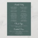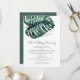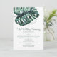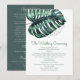 Un énorme feuille tropicale de monstera sur un modèle de programme de mariage chic parfait pour un mariage moderne de destination, un mariage sur la plage ou un mariage sur une île tropicale verte.