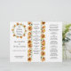 Programme de mariage triplé avec tulipes orange aquarelle, sur le dos de la carte est une couronne florale de ressort en option. Veuillez noter que la modification du type de papier peut rendre le programme difficile à plier.