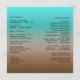 Pente tropicale turquoise / aqua à marron carte programme de mariage. Imprimez sur les deux côtés à l'aide des modèles de texte. Remplissez toutes les informations de cérémonie sur la mer vive et les couleurs de sable. Cette carte carré sera accompagnée d'enveloppes blanches.