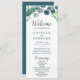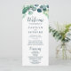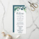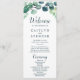 Ce programme luxuriant de mariage d'eucalyptus est parfait pour un mariage jardin élégant. Le design botanique moderne présente de magnifiques eucalyptus bleu aquarelle et des feuilles verts. Inclure le nom de la mariée et du marié, la date et le lieu du mariage, le message de remerciement, l'ordre de service, la fête de la mariée et un mémorial optionnel "en mémoire d'amour".