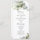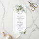 Programme de mariage verdoyant. Cette invitation de mariage élégante et élégante présente de magnifiques aquarelles peintes à la main, une végétation fleurie d'eucalyptus. Trouvez les articles correspondants dans la collection de verdure florale Eucalyptus Aquarelle.