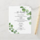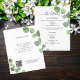 Un mariage moderne, élégant détails / programme / chronologie. Un arrière - plan blanc décoré d'eucalyptus, de sprigs. Personnalisez et ajoutez vos noms et les détails du mariage. Lettres de couleur noire. Texte des deux côtés. Ajoutez l'URL de votre site Web mariage au code QR. 1 feuille = 1 programme imprimé de bord en bord.