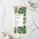 Programme de mariage vert et or tropical feuille rose vif. Ce joli design présente des feuilles de Split Leaf Philodendron (Monstera deliciosa) ou de Plante de Fromage Suisse et des feuilles de palme en vert avec contour d'or. Votre libellé est dans un cadre blanc avec contour doré. L'arrière affiche un motif à pois dorés sur arrière - plan rose vif.