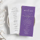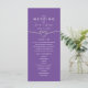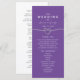 Guidez vos invités à travers votre cérémonie avec ce programme de mariage violet minimaliste élégant. Conçu avec un fond violet riche, un cœur de corde argenté romantique et un script calligraphique sophistiqué, ce programme stylé ajoute une touche moderne et raffinée à votre journée spéciale tout en gardant l'accent sur votre célébration.