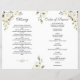 Programme de photos funéraires commémoratives de l'Ordre du service. Il présente des fleurs blanches d'ivoire et des feuilles d'aquarelle douce, une photo à l'avant et une photo de famille à l'arrière, sur un arrière - plan blanc. Utilisez l'outil Personnaliser pour ajouter vos informations et ajouter vos photos de manière simple. Pour les articles correspondants, s'il vous plaît, visitez ma collection de Merci de la fête de la vie.