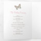 Programme de renouvellement de six pages pour les mariages ou de cérémonie de mariage. Modifiez ce programme de mariage avec vos propres noms, dates, introduction, libellé de la cérémonie, accompagnateurs de mariage, photo de votre premier événement ou mariage restreint, ou une photo de votre fiançailles, et ajoutez vos propres mots de remerciement au dos. Des papillons roses, bruns, turquoises et crème ainsi que d'autres produits de mariage couleur et des options de couleur sont disponibles. Art original et design de Sarah Trett pour www.mylittleedenweddings.com sur Zazzle.