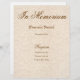 Programme de service commémoratif sur l'arrière - plan de style parchemin avec script In Memoriam titre. Customisez tout le texte pour une célébration commémorative de la vie ou du programme. Un événement commémoratif est un merveilleux moyen de partager des souvenirs et de rendre hommage à un membre de la famille ou à un ami, en plus ou au lieu d'un service funéraire traditionnel. Utilisez ce prospectus pour concevoir un programme personnalisé pour tout service commémoratif. Veuillez me contacter au lien "créé par" ci-dessous si vous souhaitez obtenir de l'aide pour customiser.