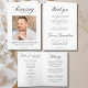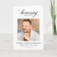 Ce programme de service funèbre moderne et minimaliste de 4 pages est conçu avec soin pour honorer une vie chère avec simplicité et grâce. Doté d'une mise en page épurée avec une photo personnalisable et un texte entièrement modifiable, il offre un espace pour l'ordre du service, la nécrologie, les prières et les messages émouvants.
