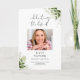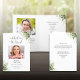 Un élégant programme mémorial funéraire plié à motif floral verdure avec photo personnalisée. Conçu par Thisisnotme©