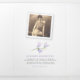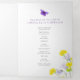 Ordre funéraire tri-plié six pages programme d'art fleur sauvage et papillons aquarelle. Embelli de papillons violets, velours jaune et cloches violettes bleu pâle sur un arrière - plan blanc. Il vous suffit de remplacer l'exemple de texte et d'ajouter vos propres photos grandeur nature sur deux pages et d'utiliser les petits supports photo encadrés blancs de style instantané avec d'autres photos spéciales. Aquarelle originale botanique et papillon et design par Sarah Trett pour www.mylittleeden.com (les photos ne sont que des images d'espace réservé à remplacer par la vôtre).