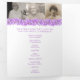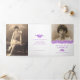 Programme funéraire ordre de service gatefold floral forget-me-not flowers programme funéraire d'art en blanc, violet, avec des touches de jaune et vert sur le papier blanc. Il vous suffit de remplacer l'exemple de texte et les supports photo par vos propres photos et informations spéciales. Dessin original encré et aquarelle d'illustration et design par Sarah Trett pour www.mylittleeden.com (les photos ne sont que des images d'espace réservé à remplacer par les vôtres).