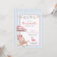 Invitation de week-end d'anniversaire ou de Bachelorette rose et bleu moderne rétro mignonne avec une chaise de plage et un parasol à l'aquarelle simples et invitants.