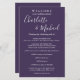 Élégant programme de week-end de mariage à l'écriture violette mettant en vedette des noms de style signature. Personnalisez avec les détails de votre week-end de mariage en lettres blanches chic. Conçu par Thisisnotme©