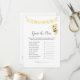 Un jeu amusant pour le baby shower est le Guess le jeu de prix. Ce jeu comporte une bannière jaune au sommet et un ours en peluche avec une abeille. Au verso, un ours en peluche s'appuie sur un tonneau de miel en regardant une abeille au miel avec des modèles.