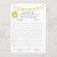 Un jeu amusant pour le baby shower est le Guess leur âge jeu. Ce jeu comporte une bannière jaune en haut et un tonneau de miel. Au verso, une petite ours en peluche se penche sur un tonneau de miel en regardant une abeille au miel avec des modèles.