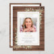 Un programme de commémoration funéraire sur commande de service avec verdure sur un arrière - plan de panneaux de bois rustique. Conçu par Thisisnotme©