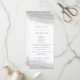 Notre élégant programme de mariage présente les détails de votre cérémonie dans un riche charbon de bois noir délavé, rehaussé de lavis de peinture à l'eau gris translucide en haut et en bas. Le verso liste les membres de votre cortège de mariage avec des champs de texte facilement modifiables. Se coordonne avec notre collection de faire-part de mariage Mist.