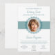 Honorez votre proche avec ce modèle de programme de funérailles élégant et personnalisable. Caractérisé par une palette de couleurs sarcelle et blanc intemporelle, un cadre de portrait circulaire et une typographie sophistiquée, cette mise en page facile à éditer vous permet de personnaliser les détails du service, les dates et les tributs sincères. Créez un souvenir professionnel de haute qualité qui célèbre magnifiquement une vie bien vécue et fournit un guide significatif pour la famille et les amis lors du service commémoratif.