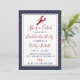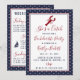 Célébrez votre future mariée dans un véritable style maritime ! Cette invitation magnifiquement conçue et double face est la "prise" parfaite pour n'importe quelle enterrement de vie de jeune fille sur la côte. Avec une bordure classique à pois bleus marine et blancs et une typographie élégante rouge et bleue marine, cette invitation donne un ton sophistiqué mais ludique à votre célébration. Le recto de l'invitation présente un homard mignon avec le slogan : "C'est une prise" tandis que le verso coordonné présente un itinéraire complet de fin de semaine d'événements amusants, de l'arrivée "Moment vraiment génial" au "Brunch nautique" et au "Dernier plongeon et départ", avec des icônes personnalisées assorties... une canne à pêche, un voilier et un poisson, renforcent le charmant thème nautique. Quel meilleur moyen de tenir votre équipe "Je le veux" informée et à jour de tous les détails spéciaux de la fête. Tout le libellé de l'invitation est entièrement personnalisable à l'aide de l'outil Zazzle, il est donc très facile pour vous de faire de cette invitation la vôtre. Cette invitation est parfaite pour un week-end de