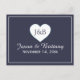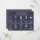 Un programme du week-end de mariage à donner aux participants et invités du mariage. L'arrière-plan actuel affiché est un bleu foncé, mais vous pouvez le modifier en cliquant sur Personnaliser. Vous pouvez également modifier les éléments, par exemple si vous souhaitez supprimer le cœur, il suffit de supprimer l'image. Sa taille le rend adapté à une version de poche qui rentre facilement dans un sac à main.