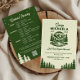 Invitation de week-end de célibataire en camping avec itinéraire au verso est une invitation amusante et en plein air conçue pour les retraites en cabane, le camping de luxe en montagne, les escapades au lac ou les aventures dans les parcs nationaux. Le devant présente une illustration de badge de camping rétro avec des montagnes, des pins et une rivière en vert forêt sur un crème chaud, avec des lignes modifiables pour le nom de camp de la future mariée, l'année d'établissement, les dates du week-end, le lieu et le slogan ludique « Dernière piste avant le voile ». Le verso fournit un itinéraire de week-end prêt à personnaliser qui organise les plans du vendredi au dimanche dans un calendrier clair, ainsi qu'un espace flexible pour les notes de frais, les détails de paiement ou de contact, et un code QR scannable qui peut être lié à Venmo ou Cash App, aux listes de cadeaux, aux informations de logement ou à tout lien de site web. Dans un style esthétique de camping moderne-vintage, cette invitation convient aux retraites en plein air décontractées et aux week-ends d'aventure à haute énergie, et se coordonne facilement avec la signalisation, les faveurs et la décoration assorties. Utilisez-le pour définir le ton d'un week-end de randonnée, de kayak, de camping, de visites de vignobles ou de journées en bateau, et pour garder les invités sur la même page avant le voyage. La typographie claire rend les détails clés faciles à lire, tandis que la palette verte cohérente fonctionne magnifiquement