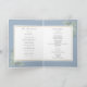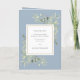 Doté de délicats feuilles de verdure aquarelée sur un arrière - plan bleu poussiéreux, ce programme de mariage botanique plié chic peut être personnalisé avec vos informations spéciales de jour de mariage. Conçu par Thisisnotme©