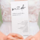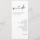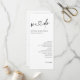 Ce programme de mariage moderne présente un design minimaliste et un script d'écriture manuscrite moderne. Il est configuré avec le flux de texte à droite et à gauche, mais vous pouvez cliquer sur "personnaliser" pour le rendre centré. Le dos a vos informations de fête de mariage et de famille avec un merci spécial en bas.