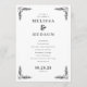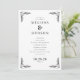 This elegant wedding program features a clean, symmetrical layout with ample white space that enhances its sophisticated and formal appearance. The design utilizes a classic black text on a crisp white background, creating a timeless look complemented by subtle leafy branch illustrations at the corners. Typography plays a key role, with bold serif fonts highlighting important details and smaller italicized fonts for ceremony elements, ensuring clarity and elegance. Perfect for traditional weddings, this program conveys an atmosphere of refinement and celebration.